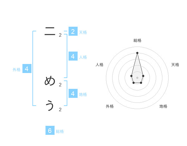 二 めうさんの総格は6画の4点!