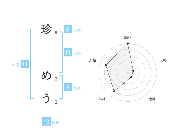 珍 めうさんの総格は13画の5点!
