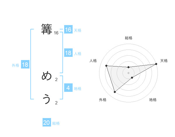 篝 めうさんの総格は20画の1点!