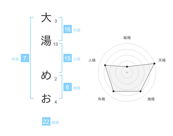 大湯 めおさんの総格は22画の1点!