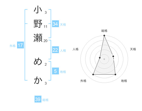 小野瀬 めかさんを姓名の画数から五運を鑑定