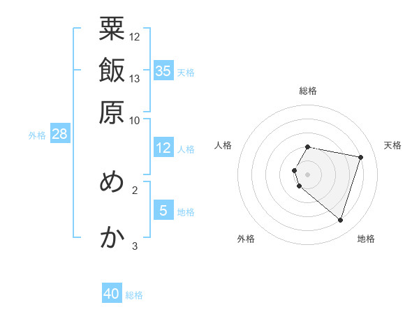 粟飯原 めかさんを姓名の画数から五運を鑑定