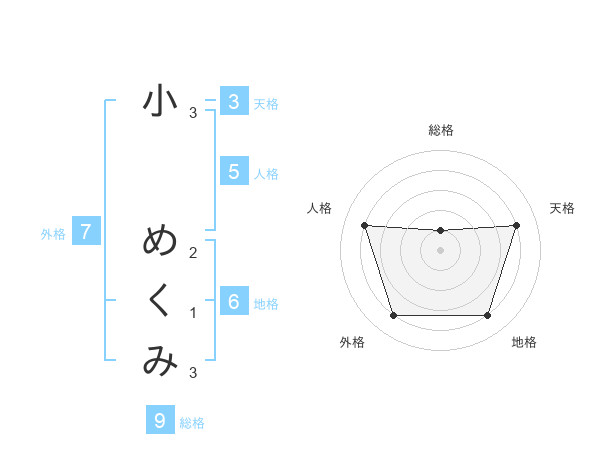 小 めくみさんの総格は9画の1点!