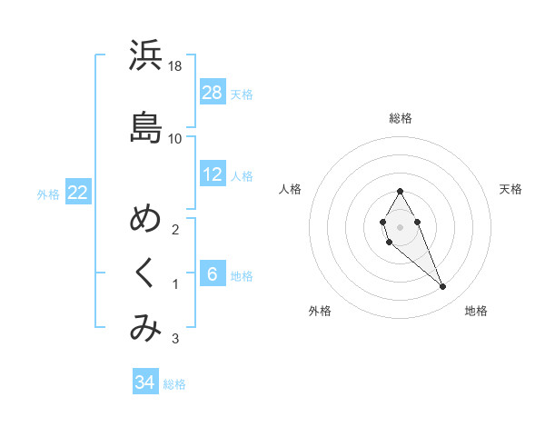 浜島 めくみさんを姓名の画数から五運を鑑定