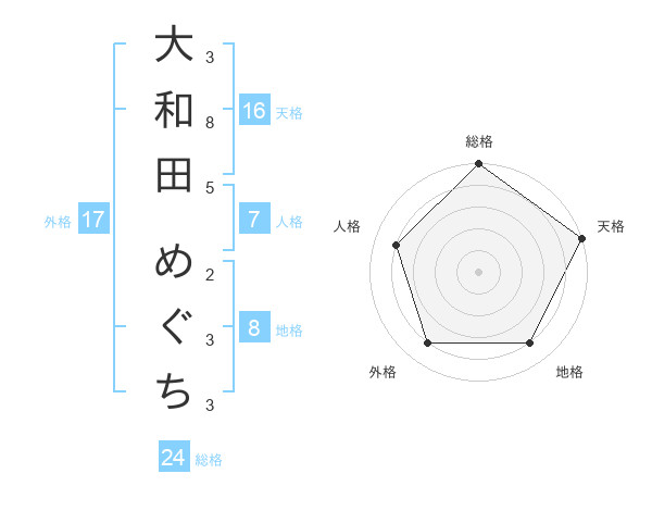 大和田 めぐちさんを姓名の画数から五運を鑑定