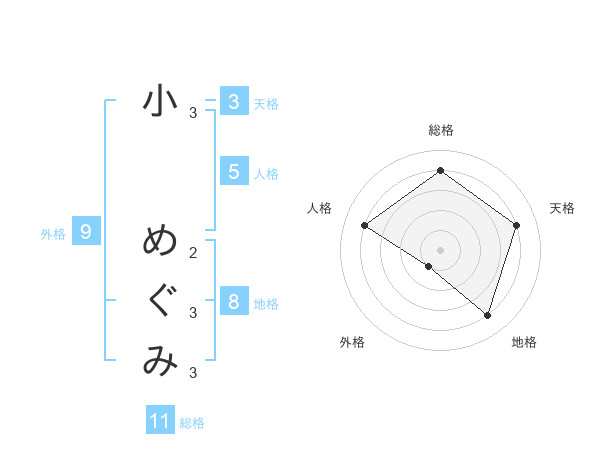 小 めぐみさんの総格は11画の4点!