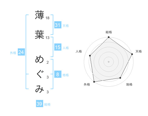 薄葉 めぐみさんを姓名の画数から五運を鑑定