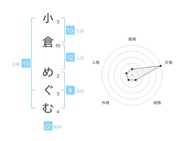 小倉 めぐむさんを姓名の画数から五運を鑑定