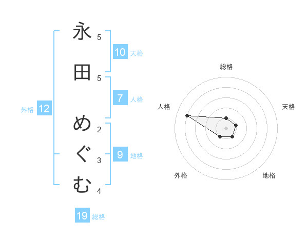 永田 めぐむさんを姓名の画数から五運を鑑定