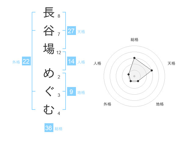 長谷場 めぐむさんを姓名の画数から五運を鑑定