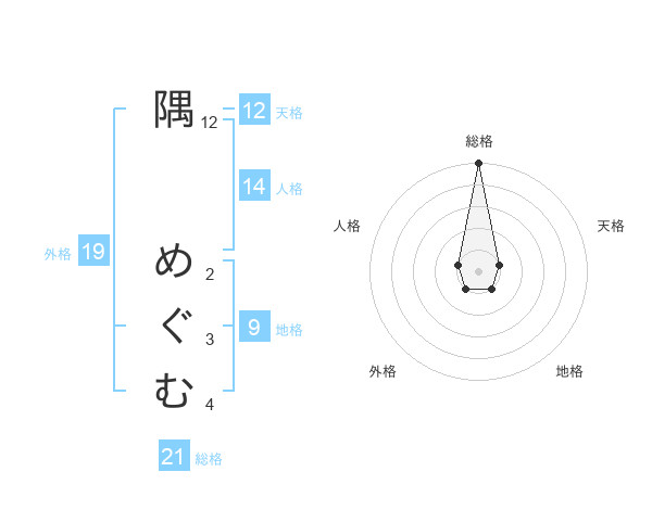 隅 めぐむさんの外格は19画の1点!
