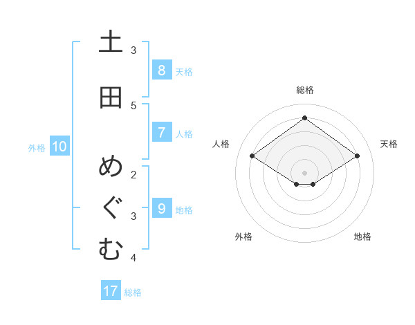 土田 めぐむさんを姓名の画数から五運を鑑定