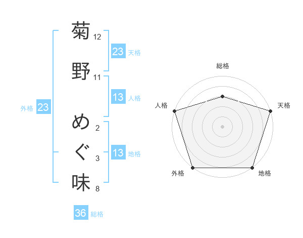 菊野 めぐ味さんを姓名の画数から五運を鑑定
