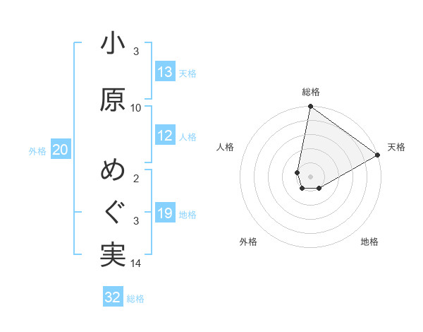 小原 めぐ実さんの天格は13画の5点!