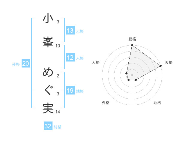小峯 めぐ実さんを姓名の画数から五運を鑑定