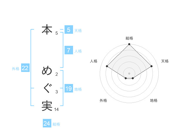 本 めぐ実さんの外格は22画の1点!