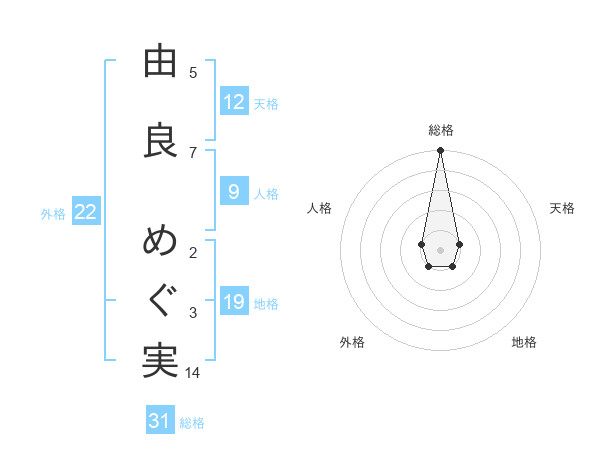 由良 めぐ実さんを姓名の画数から五運を鑑定