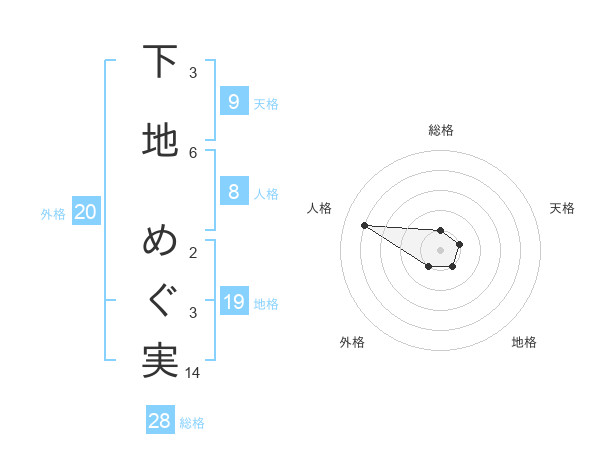 下地 めぐ実さんを姓名の画数から五運を鑑定