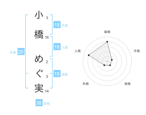 小橋 めぐ実さんの総格は38画の4点
