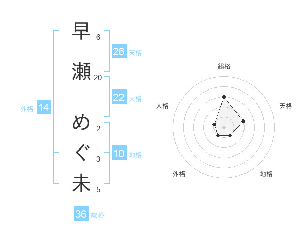 早瀬 めぐ未さんを姓名の画数から五運を鑑定