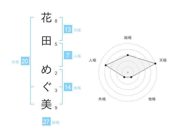 花田 めぐ美さんを姓名の画数から五運を鑑定