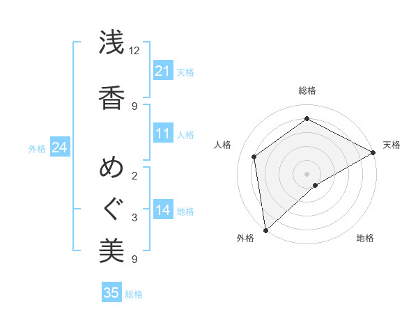 浅香 めぐ美さんを姓名の画数から五運を鑑定
