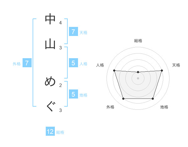 中山 めぐさんの外格は7画の4点!