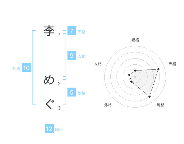 李 めぐさんの外格は10画の1点!