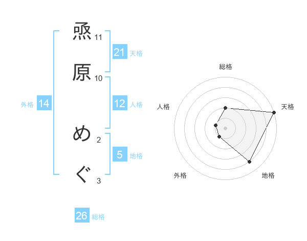 焏原 めぐさんを姓名の画数から五運を鑑定