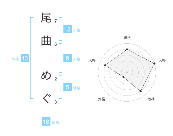 尾曲 めぐさんを姓名の画数から五運を鑑定