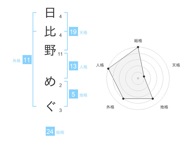 日比野 めぐさんを姓名の画数から五運を鑑定