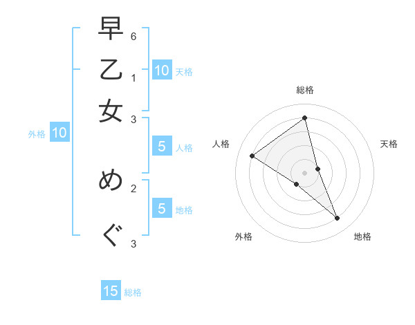 早乙女 めぐさんを姓名の画数から五運を鑑定