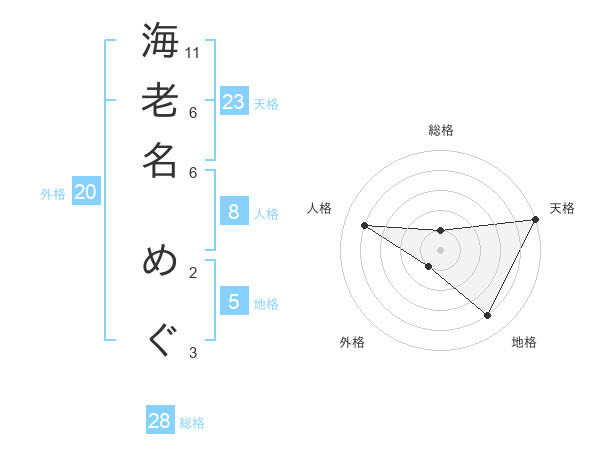 海老名 めぐさんの天格は23画の5点!