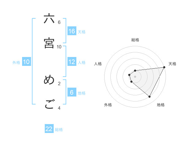 本サイトの鑑定結果の正当性は保証しません。鑑定結果は参考程度にお読みください。実際の名づけにご利用される場合は、姓名判断についてご自身でよくお調べください。
