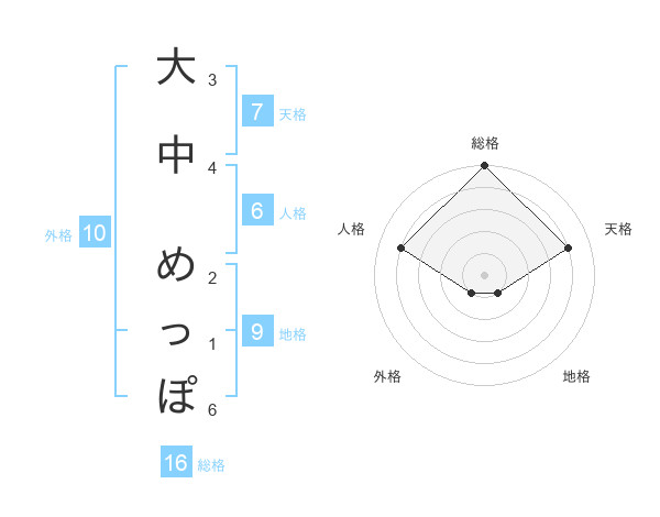 大中 めっぽさんの総格は16画の5点!