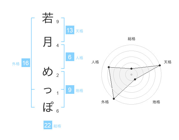 若月 めっぽさんの天格は13画の5点!