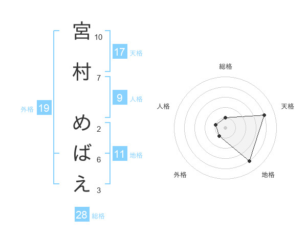 宮村 めばえさんを姓名の画数から五運を鑑定