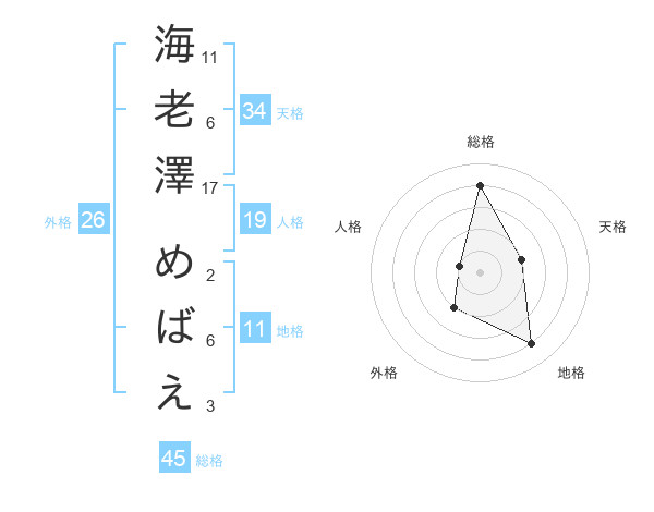 海老澤 めばえさんの総格は45画の4点!