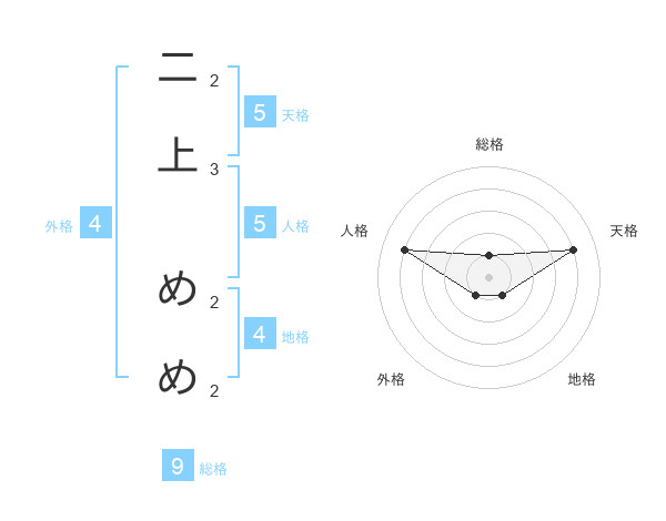 二上 めめさんの総格は9画の1点!