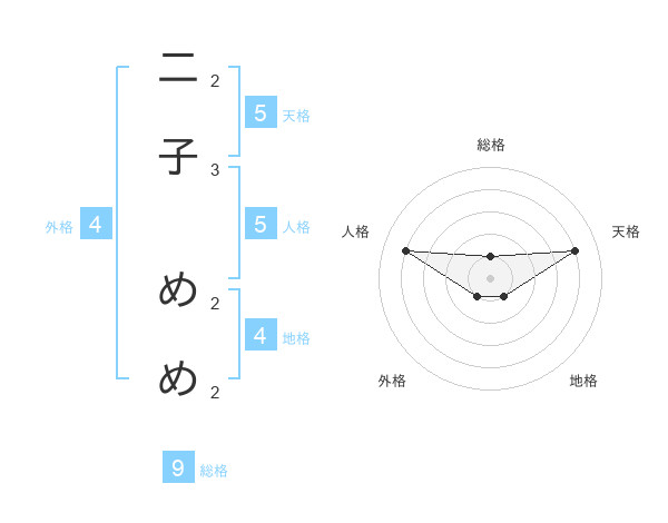 二子 めめさんの総格は9画の1点!