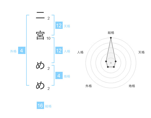 二宮 めめさんの総格は16画の5点!
