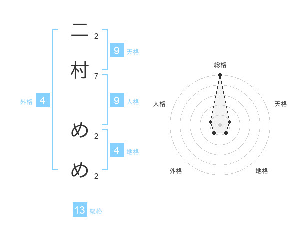 二村 めめさんの総格は13画の5点!