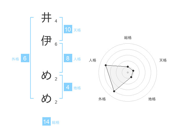 井伊 めめさんの外格は6画の4点!