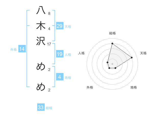 八木沢 めめさんを姓名の画数から五運を鑑定