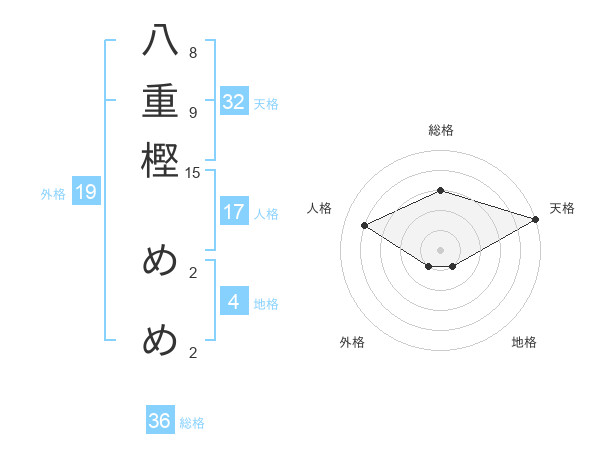 八重樫 めめさんを姓名の画数から五運を鑑定