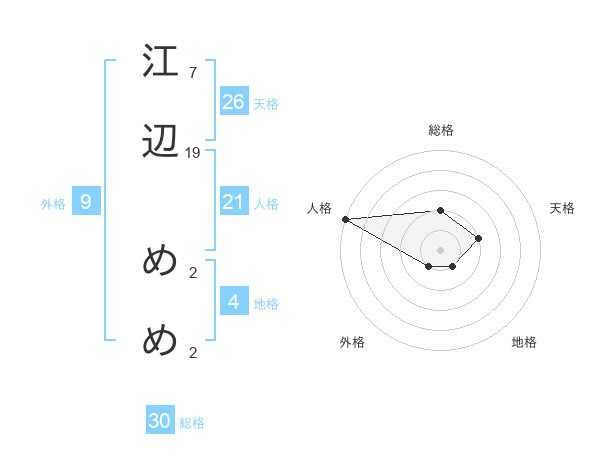 江辺 めめさんの総格は30画の2点!