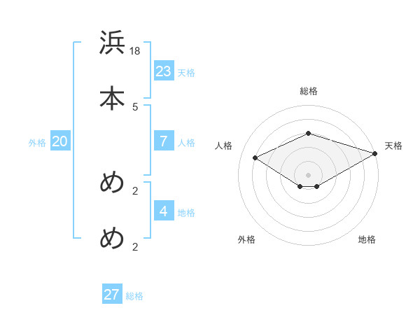 浜本 めめさんの天格は23画の5点!