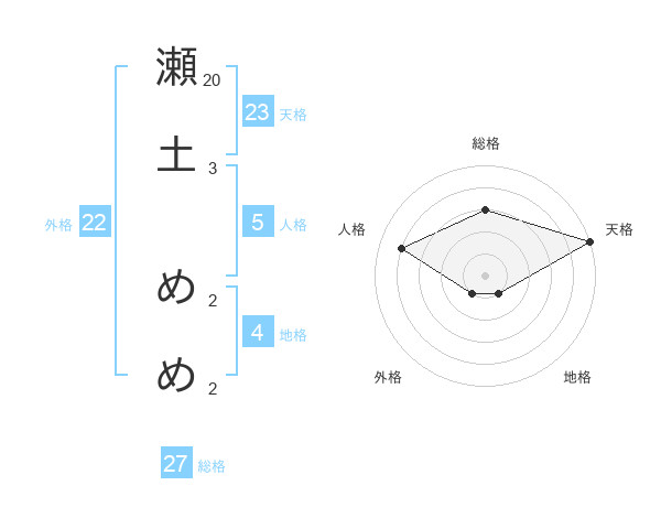 瀬土 めめさんの天格は23画の5点!