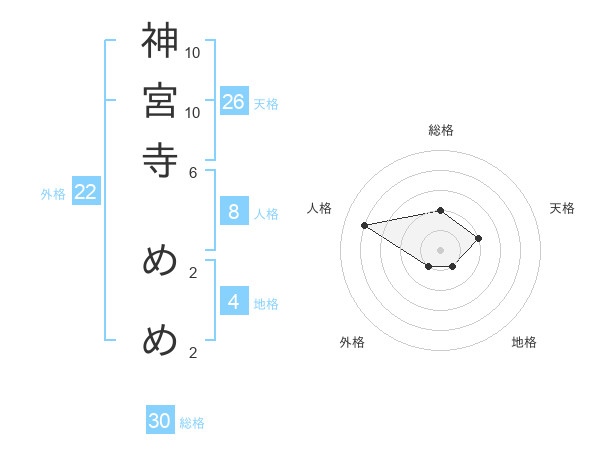 神宮寺 めめさんの総格は30画の2点!