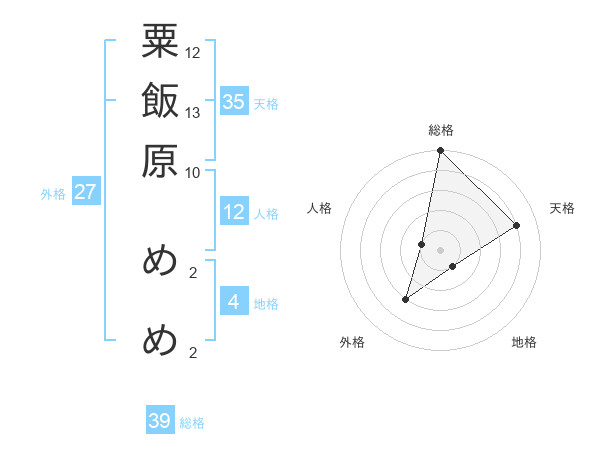 粟飯原 めめさんを姓名の画数から五運を鑑定